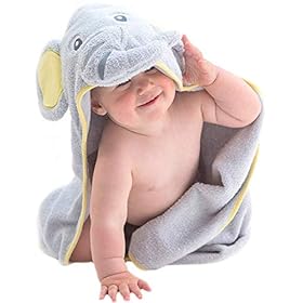 Hooded Baby Towel Gray Elephant by Little Tinkers World Natural Cotton Soft and Absorbent Bath Towels with Hood for…