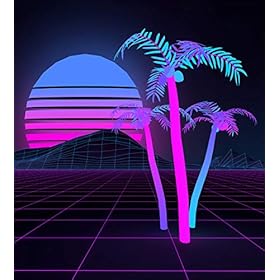 Eaiizer Alien Poster 80’S Retro Futuristic Landscape Light Grid Surface And Palms Against Wall Art Print Artwork for…