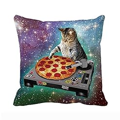 UOOPOO Food Funny Creative Hipster DJ Cat Pizza Cat Galaxy Pizza Cat Design Zippered Polyester Pillow Case 18 x 18…