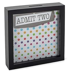 Admit Two Polka Dot 7 x 7 Black Wood Shadow Box Ticket Stub Holder