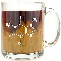 Caffeine Molecule – Glass Coffee Mug – Makes a Great Gift Under $15 for Science Buffs!