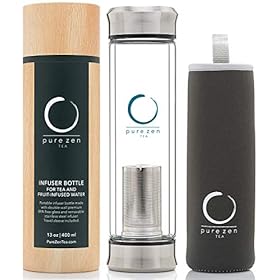 Pure Zen Tea Tumbler with Infuser – BPA Free Double Wall Glass Travel Tea Mug with Stainless Steel Filter – Leakproof…