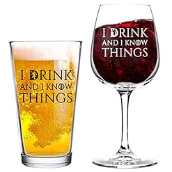 I Drink And I Know Things Beer and Wine Glass Set- Cool Present Idea for Bridal Shower, Wedding, Engagement, Anniversary…