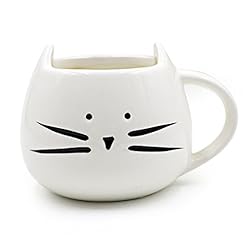 Teagas Novelty Cat Face Mug 12 Oz for Coffee Tea – White Kitty Hilarious Coffee Mug, Lucky Fathers Day Gift for Crazy…