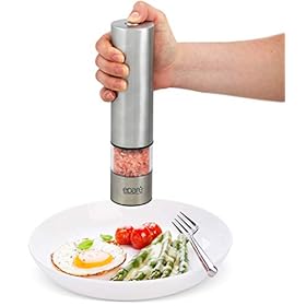Electric Salt or Pepper Grinder – Battery Operated Ceramic Burr Peppermill Shaker – Automatic Stainless Steel Grinders…
