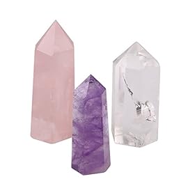 Banshren Healing Crystal Wands | 2″ Amethyst Crystal, Clear Quartz Crystal Wand & Rose Quartz Crystal Points | 6 Faceted Reiki Chakra Meditation Therapy (Set of 3)