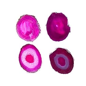 JIC Gem Dyed Pink 3.5-4″ Agate Coaster Sliced Natural Agate Coaster for Coffee Cup Home Decor with Rubber Bumper Set of 4