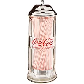 Tablecraft Coca-Cola Glass Straw Dispenser with Metal Lid, Small