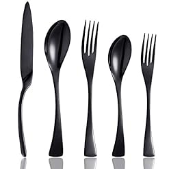 Culterman 20 Piece Black Flatware Silverware Cutlery Sets, unique modern look, Home & Kitchen Stainless Steel Dinnerware…