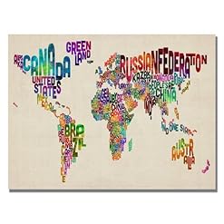 Typography World Map II by Michael Tompsett, 22×32-Inch Canvas Wall Art