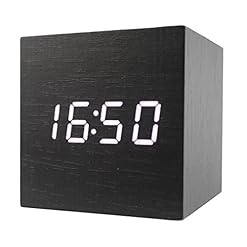 Dianoo Cube Black Wood White Led Alarm Clock – Time Temperature Date – Sound Control (Black Wood + White Light)