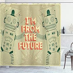 Ambesonne Modern Shower Curtain, Vintage Futuristic Image of Robots with I am from The Future Words Modern Print Art…