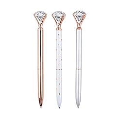 3 Pcs Rose Gold Pen with Big Diamond/Crystal ,Metal Ballpoint Pen,Rose Gold/Silver Office Supplies,Black Ink (3pcs)