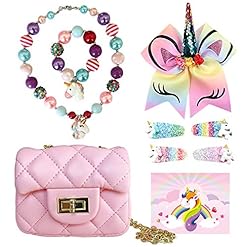 LittleBoo Unicorn Gifts for Girls – Crossbody Bag, Unicorn Necklace/Bracelet/Hair Bow/Hair Clip and Unicorn Gift Card…