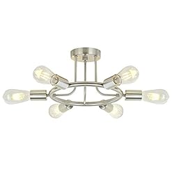 Sputnik Chandelier Brushed Nickel Modern Starburst Chandelier 6 Lights Semi Flush Mount Ceiling Light Industrial Vintage…