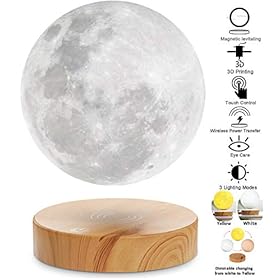 VGAzer Levitating Moon Lamp,Floating and Spinning in Air Freely with 3D Printing LED Moon Lamp Has 3 Colors Modes(YE,WH…