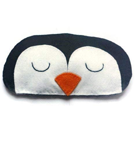 Cute silky eye masks with hand sewn felt Penguin design on outer aspect. This sleep masks measures 18.5cm by 9cm There are two black elastic straps that match spherical the pinnacle