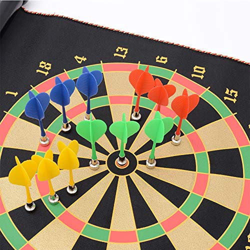 【DEMONSIONS】 Measurement 15″ with 12 darts, three purple, three yellow, three blue and three inexperienced. The protection dartboard may be rollup so it is simple carrying and nice present for kids.