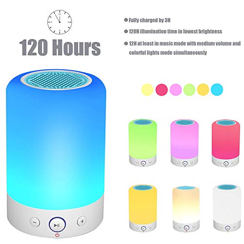 » The light color can be changed by touching the sensor on the top of the lamp, the warm and soft lighting protect your eyes from harms. Bluetooth speaker lamp, it is a great touch lamp for bedroom. You could set 10, 20, 30, 60, 90, 120 minutes timing. It’s also useful when you are doing Yoga, applying facial mask etc.