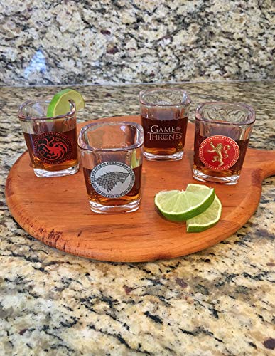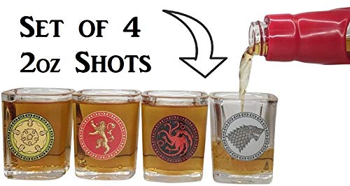 POPULAR ROYAL HOUSE SIGILS: Every Sport of Thrones shot glass includes a extremely detailed sigil from one of many 4 hottest homes of Westeros. The clear shot glass set contains brightly coloured decals from the homes of Targaryen, Baratheon, Lannister and Stark.