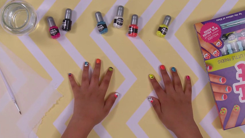 Comes with 56-page guide, 35+ designs, 6 colours of kid-friendly nail polish, A fine-tipped element brush