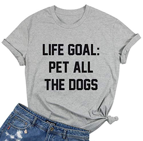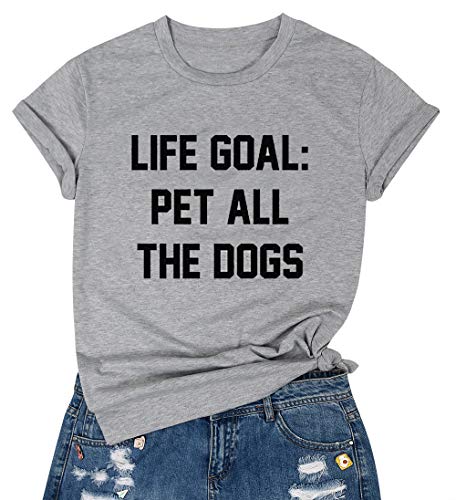 ❤️Feature: Life goal pet all the dog shirts, dog mom tee shirt, funny saying tee shirts for women, casual short sleeve tee shirt for women.