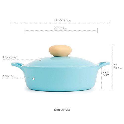 Retro’s forged aluminum design offers a number of advantages to the consumer. Retro’s thick wall gauge offers sturdiness and a high quality really feel. Identified for its distinctive sturdiness and excessive warmth conductivity, forged aluminum is rising in reputation as a protected and inexpensive different to stainless-steel. At simply 1/three the load of forged iron, forged aluminum’s even warmth distribution properties enable for quick cooking and decreased vitality consumption. Moreover, the forged aluminum physique and lid work in conjunction to create a convection impact, producing currents of scorching air for extra environment friendly cooking. Made in Korea.