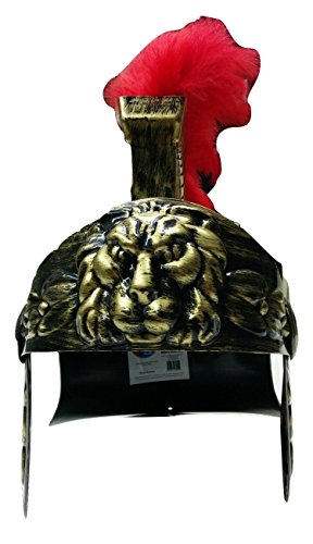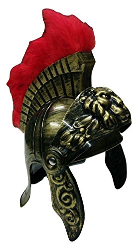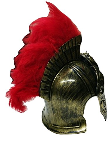 Nicky Bigs Novelties Roman Gladiator Helmet Gold Plastic Roman Helmet with Pink Feather Plume. One Measurement Matches Most Adults and Some Kids! Feather mohawk piece attaches to helmet. Movable ear facet plates and visor. Thick sturdy plastic however not designed for security safety. Use as a toy, costume, costume up, and fake play solely.