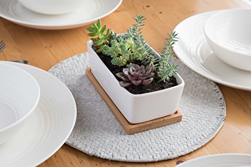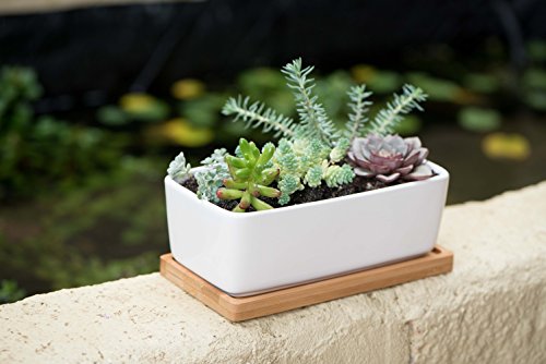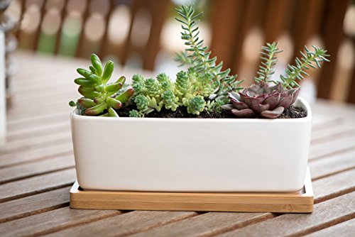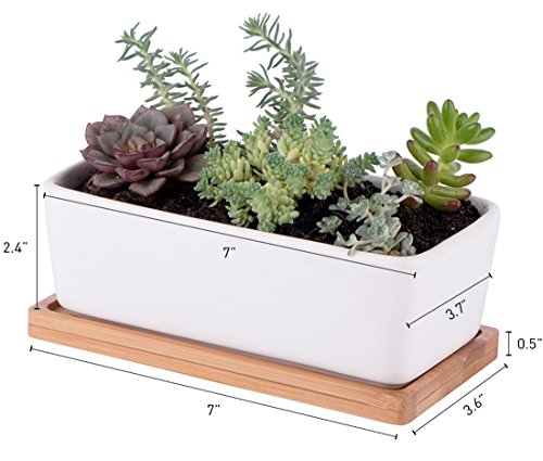 SMALL AND PERFECTLY FORMED – Each planter measures 7” long by 3.7” wide x 2.4″ tall, and feature a drainage hole and bamboo tray – plants not included.