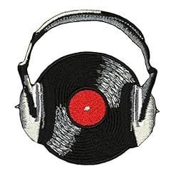 Novelty Iron on – Music Themed Rock n Roll Record With Headphones Black Logo Patch, Multicolor, 3.125″ x 3.25″